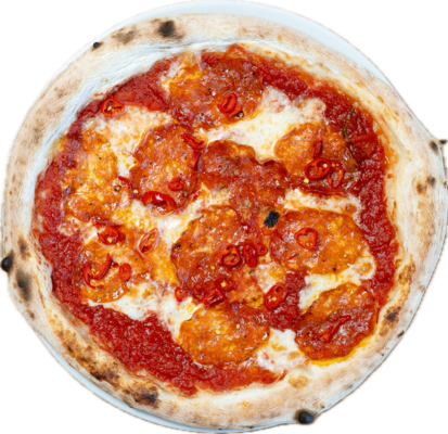 sos z pomidorów San Marzano, mozzarella Fior di Latte, salami spianata, chilli
